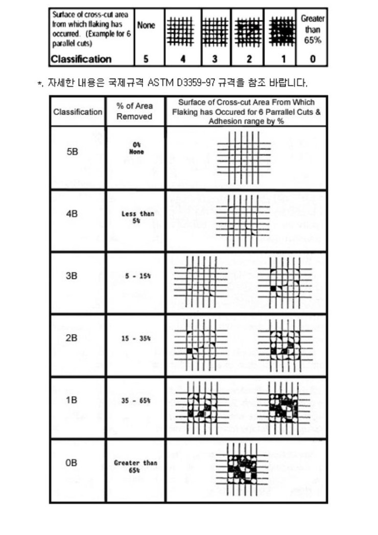 Boyalı parçanın üzerindeki boya bıçak yardımı ile kesilerek test edilir. Croscut bıçakları 6 bıçak ile 11 bıçak arasında olmaktadır. Bir boyalı parçanın üzerinde önce 6 bıçakla boya kesilir, sonra çapraz veya artı şeklinde kesilir, orta kısma yüksek kuvvetli çekim gücüne sahip adezyon bandı yapıştırılır ve kaldırılır, dökülen tozlar bölgede fırça yardımı ile temizlenir ve büyüteçle bakılarak karelerin içinde çatlama ve atmaların olup olmadığı tespit edilir. Uluslararası ve TSE standartlarında uygulanan boya testlerinden, en önemlisi diyebiliriz.