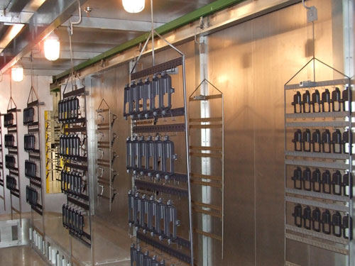 Toz Boya, yaş boya, kaplama ve kimyasal tesislerinde aktif olarak kullanılan askı aparatları; boyanacak parçaların cinsine göre projelendirilmeli, tasarlanmalı ve numune olarak ortaya çıkarılmalıdır. Çıkan numunenin testinden sonra ilgili revizeler yapılarak, seri üretime geçilmelidir. Boya aparatı tasarlanırken tesisin durumu, yapılan boyanın cinsi, ön yüzey işlemleri, temizlik maliyeti, işçilik ve parçanın durumu, göz önünde bulundurularak tasarım yapılmalıdır. Sabitlenmesi güç olan parçaların, tutucuların ve çözümlerin oluşması için öncesinde fikir alış verişinde bulunulup, üzerinde detaylı çalışma yapılması gerekir. Parçalarınıza özel geliştirilen askı sistemleri ile boyama esnasında ürünleriniz sabit kalır ve kaliteli bir boyama süreci gerçekleştirebilirsiniz. Projeye göre malzeme tercihi yapılarak işlem başlatılır. Askı çözümleri uzmanlık gerektirir!